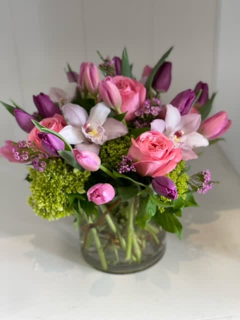 Willow Garden Floral Design and Gift Boutique LLC's latest custom flower arrangement featured sunflowers, tulips, and roses, carefully arranged in a large, eco-friendly vase. It was placed in Ladera Ranch's central park where families gather. Order a bespoke Valentine's Day or Mother's Day bouquet on our website and have it delivered exactly when you want with our timely flower delivery to Ladera Ranch.